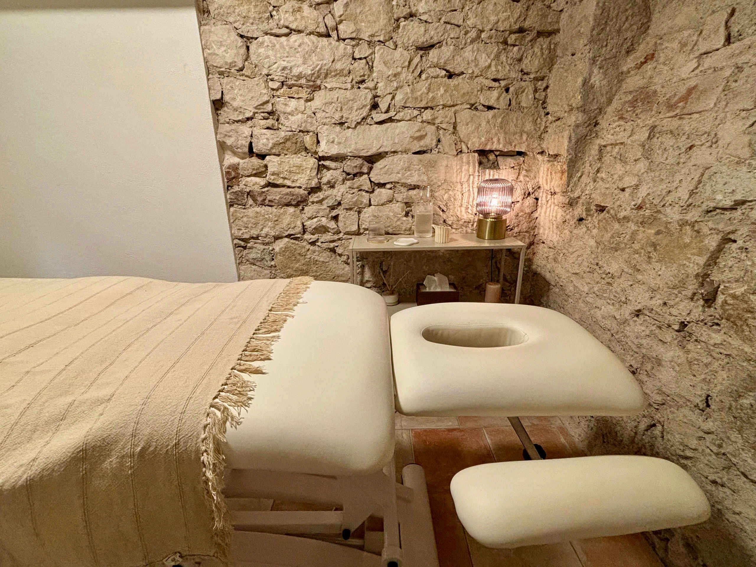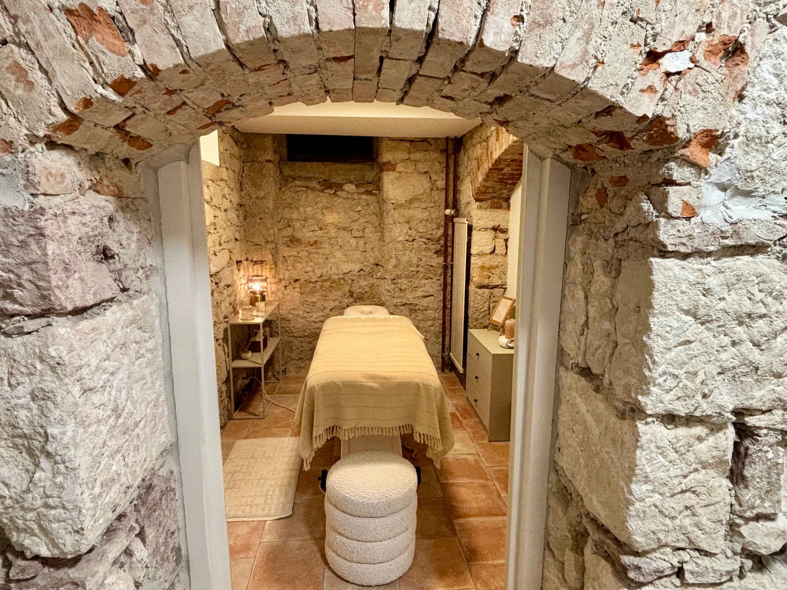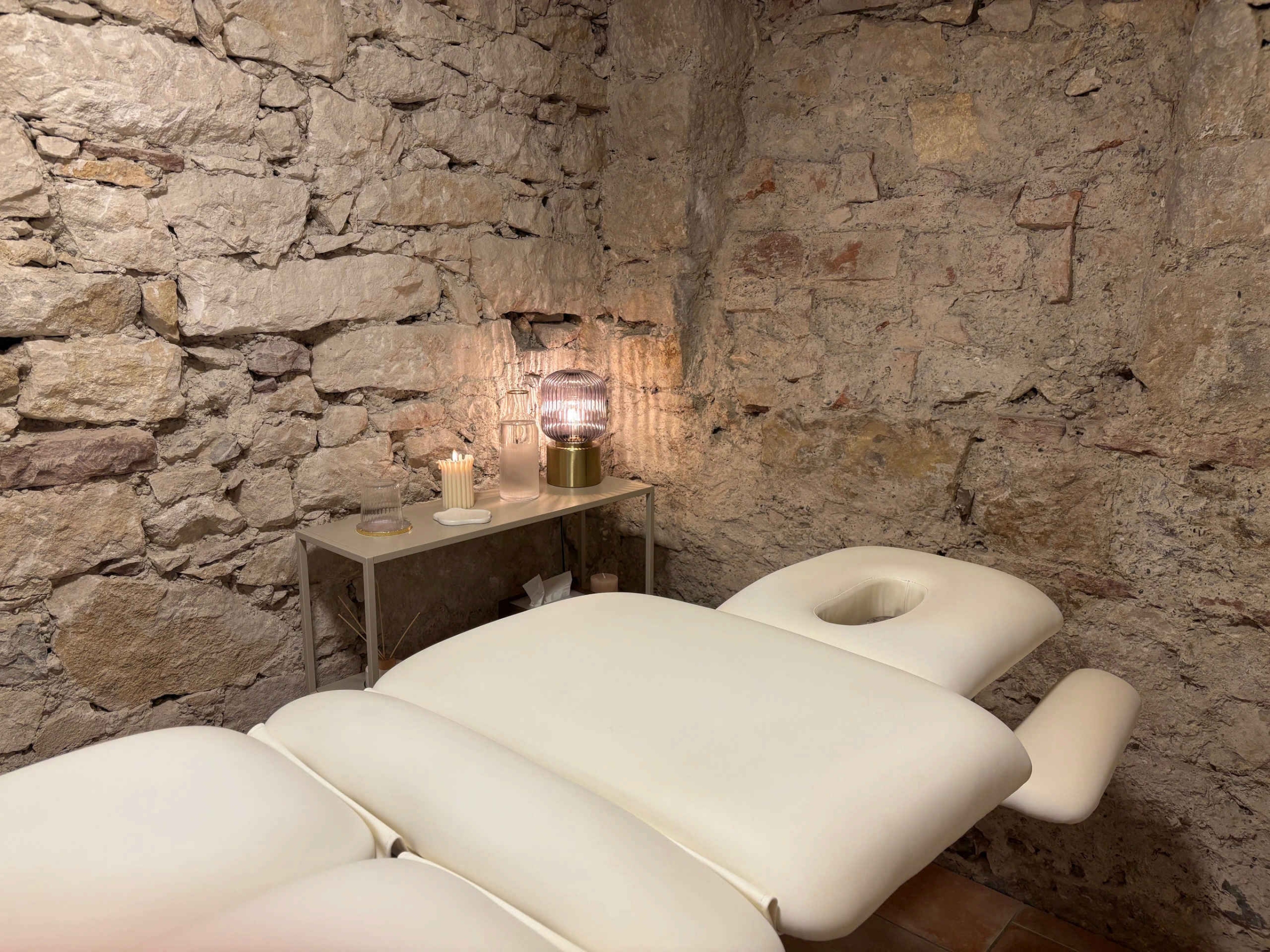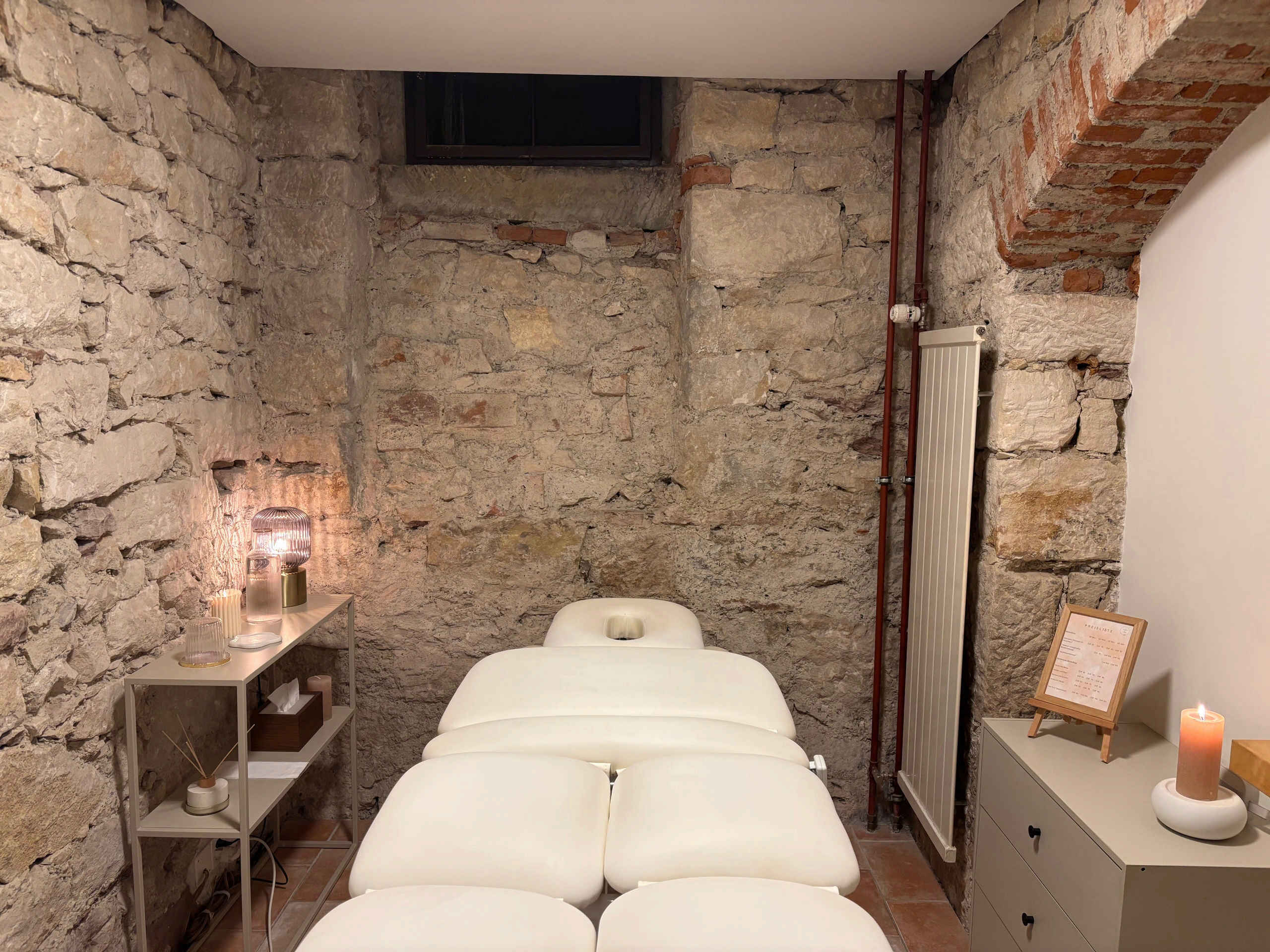 Treten Sie ein in unsere Oase der Ruhe, verborgen in einem charmanten Keller mit historischen Bruchsteinmauern. Hier erwartet Sie eine spezielle Atmosphäre, die zum Verweilen und Entspannen einlädt. Sanfte Klänge und warmes Licht, ergänzt durch den flackernden Schein der Kerzen, schaffen ein Ambiente, das all Ihre Sinne verwöhnt.