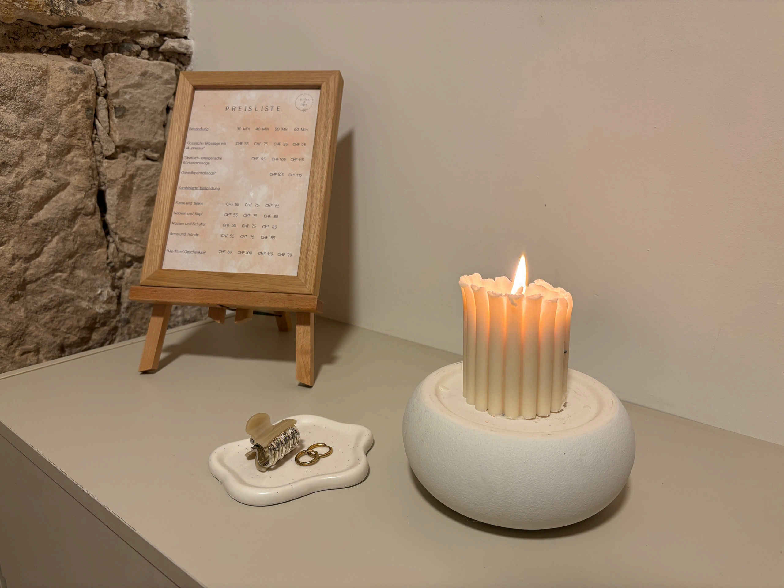 Nehmen Sie sich einen Moment nur für sich. In unserem liebevoll gestalteten Raum erwartet Sie eine Oase der Ruhe: ein Ort, an dem Wärme, Geborgenheit und Harmonie spürbar werden.